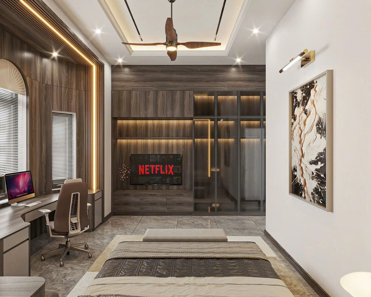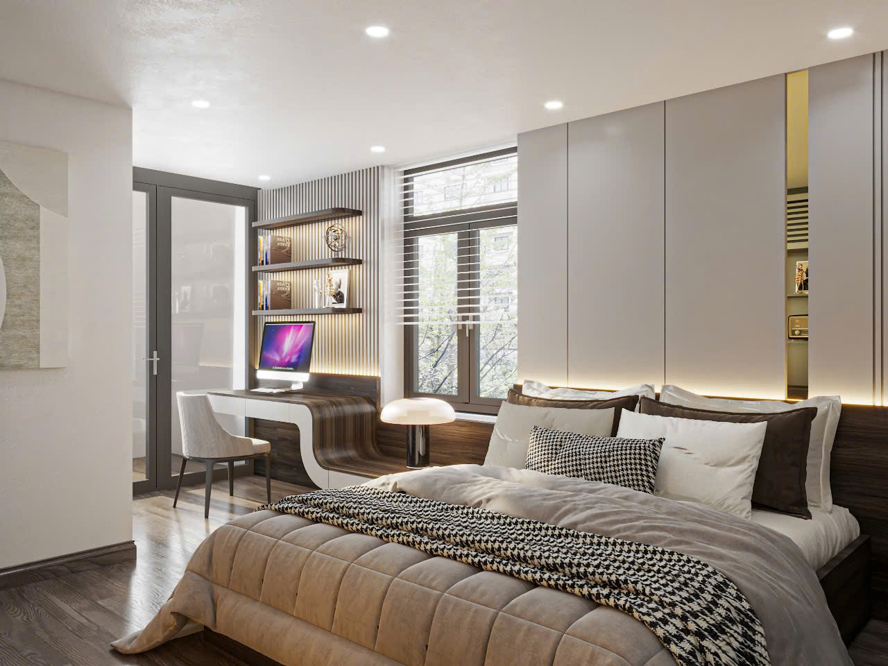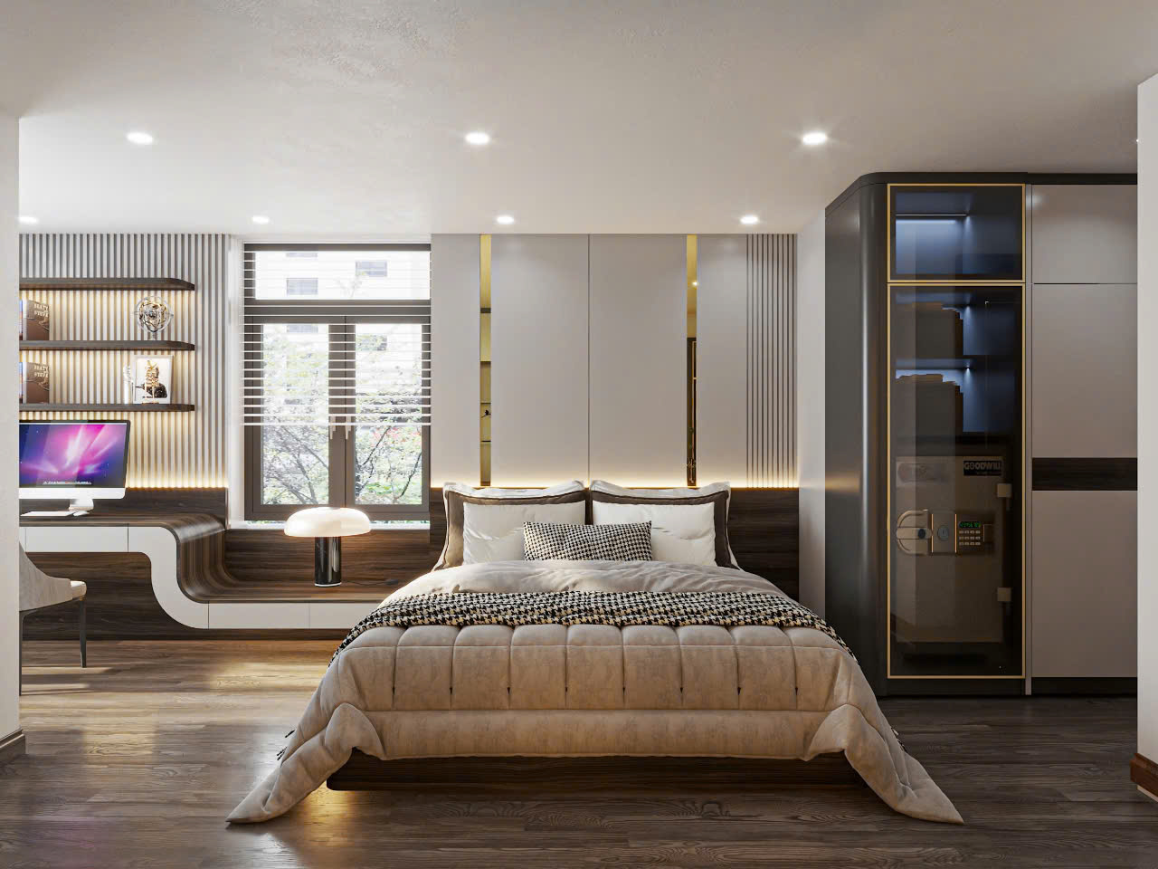 Phỏng ngủ master diện tích 22m2 với đầy đủ tiện ích sử dụng bày trí hài hòa sang trọng, hiện đại và rất phong cách.