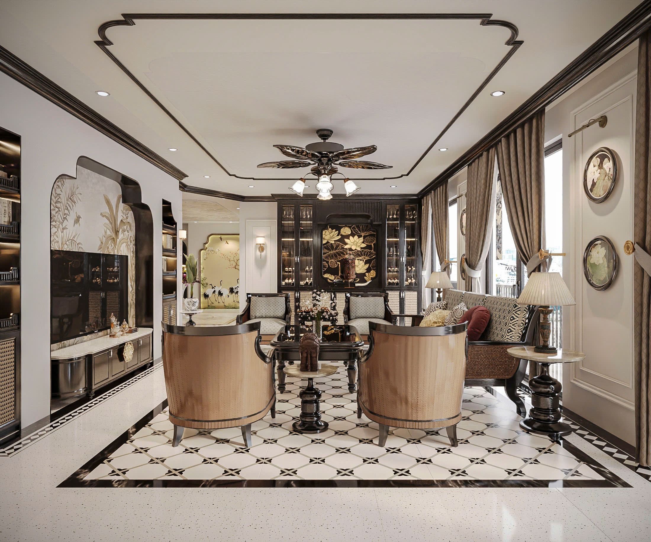Thiết kế thi công nội thất biệt thự theo phong cách INDOCHEN tân cổ điển