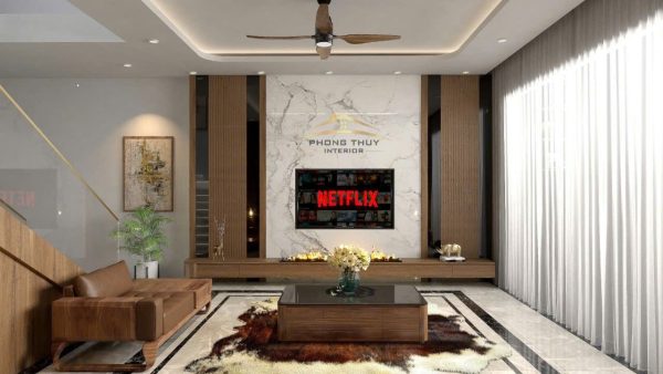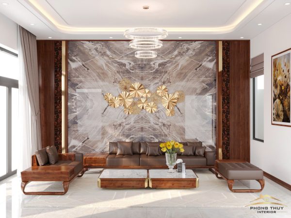 Nam chủ của căn biệt thự thuộc mệnh Thổ, hiểu rõ điều đó NỘI THẤT ANHOME thiết kế phòng khách với gam màu chủ đạo là màu nâu trầm xen kẽ màu trắng, vừa hợp mệnh của gia chủ, vừa tạo sự sang trọng, hiện đại, mới mẻ cho căn phòng.