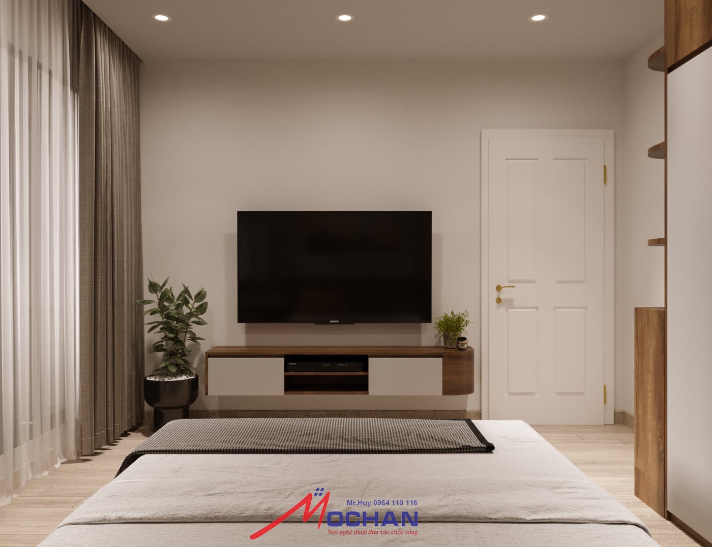 Phòng ngủ với chất liệu MDF chống ẩm sơn phủ INCHEM cao cấp