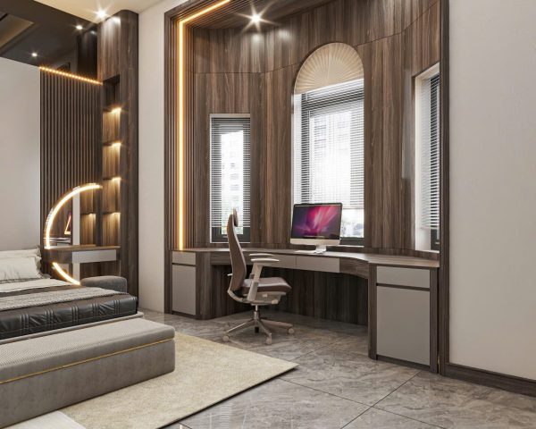 Gam màu ấm cúng làm chủ đạo, tạo nên cảm giác yên bình cho một giấc ngủ tuyệt vời. Thiết kế tận dụng được ánh sáng tự nhiên, tạo nên cảm giác gọn gàng, bắt mắt cùng với hệ thống rèm cửa điều chỉnh ánh sáng dễ dàng.