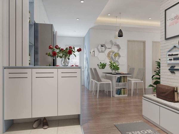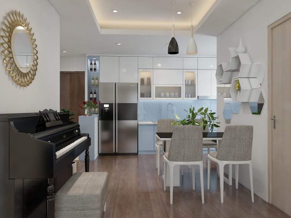 Với gam màu tươi mới, trẻ trung, phòng khách được thiết kế mang đến sự hiện đại, năng động và đẳng cấp cho căn hộ. Đây là nơi các vị khách có thể quan sát được rõ nhất cách bố trí, cũng như gây ấn tượng với thiết kế ngôi nhà của mình. Do đó thiết kế cần đảm bảo sự hài hòa về mặt mỹ quan, sự tinh tế trong cách sắp xếp nội thất để tạo nên một mẫu thiết kế hoàn hảo nhất.