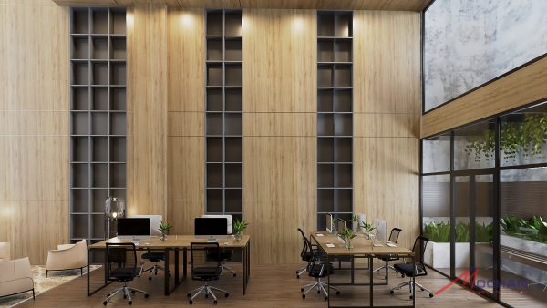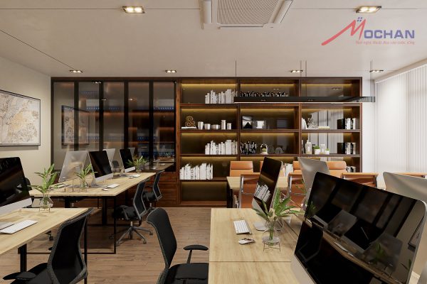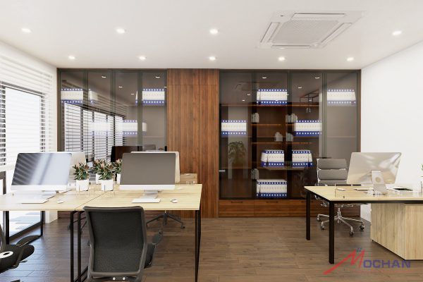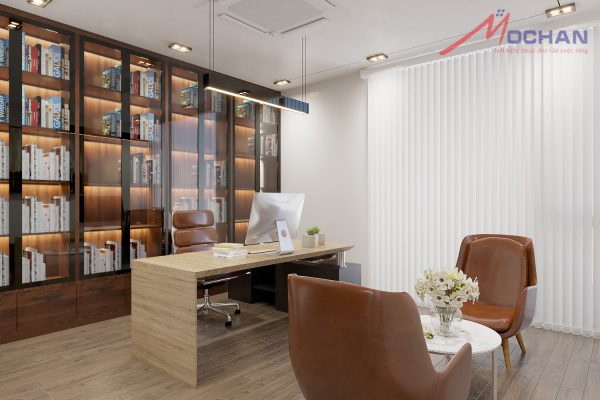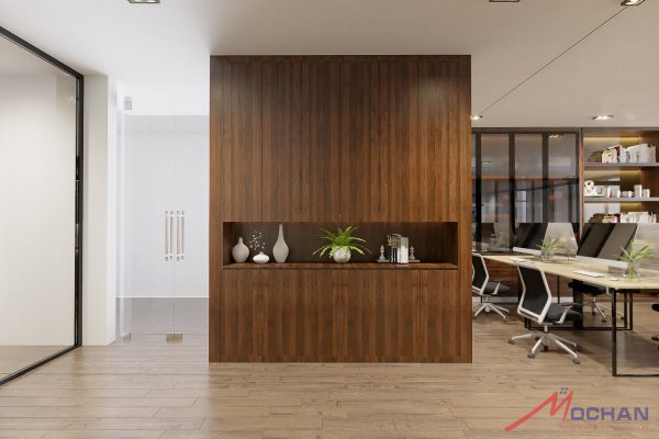 Lắng nghe, tiếp thu ý kiến chỉ đạo sáng suốt, các bạn thiết kế Các văn phòng đẹp của Mộc Hân đưa ra giải pháp tủ tài liệu kín tường kết hợp tủ trang trí để không gây cảm giác bị áp đặt như những văn phòng khác chỉ thấy tủ tài liệu, hồ sơ, do đó chúng tôi tính ra những vị trí dành cho tài liệu sao cho gọn gàng, thoáng cho văn phòng.