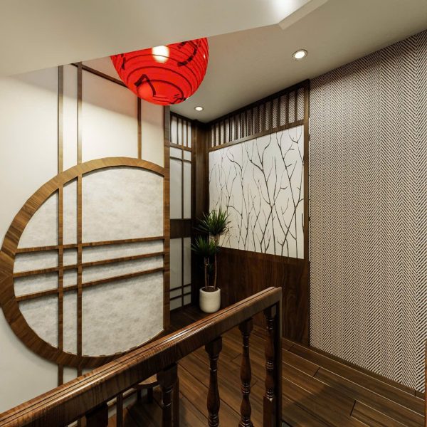 Phong cách kiến trúc Nhật Bản là điểm nhấn quan trọng trong thiết kế. Mái nhà hình chữ V và gỗ tự nhiên được sử dụng để tạo nên vẻ đẹp tự nhiên và truyền thống. Kết hợp mái nhà truyền thống với kính hoặc cửa sổ lớn, khách hàng có thể tận hưởng ánh sáng tự nhiên và tầm nhìn ra cảnh quan xung quanh.